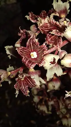 Les feuilles sont trilobées, évoquant une empreinte de dinosaure[3].