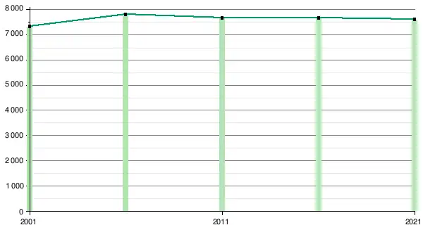 En 2008, la population de 7 978 habitants est composée de 3 970 hommes et 4 008 femmes.