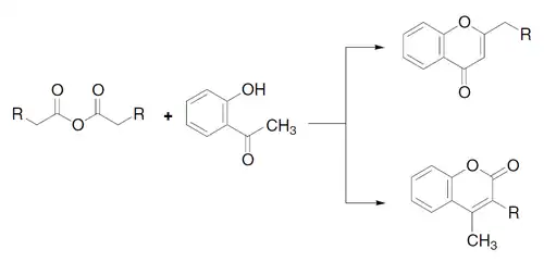 - ↑ G.P. Ellis, The Chemistry of Heterocyclic Compounds, vol. 31, New York, Wiley & Sons, , 495–555 p. (ISBN 0-471-38212-4, DOI 10.1002/9780470187012.ch9), « General Methods of Preparing Chromones »