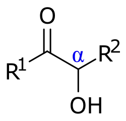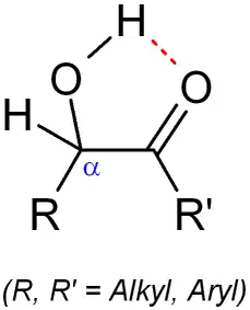 Les acyloïnes sont stabilisés par la formation d'une liaison hydrogène entre l'hydrogène de la fonction hydroxyle et l'oxygène de la fonction carbonyle.
