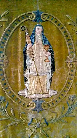 Populairement invoquée pour la guérison des affections de la vue, elle est traditionnellement représentée en habit religieux.