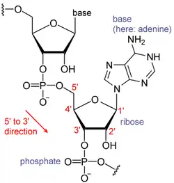 L'adénosine triphosphate ou ATP, est également un nucléotide, la seule différence entre celui-ci et ceux présents dans les acides nucléiques réside au niveau du nombre de groupements phosphate attachés au nucléoside (un nucléoside est un nucléotide sans groupement phosphate). En fait, comme leurs noms l'indiquent, l’ATP possède trois groupements phosphate et l'adénosine monophosphate n’en possède qu'un.