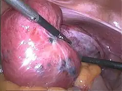L’échographie par voie endovaginale est également un examen utile au diagnostic d'adénomyose avec en particulier la présence d'un aspect hétérogène du myomètre[2],[1].