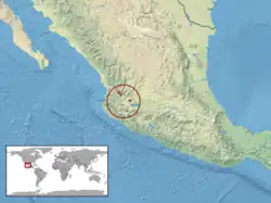 Cette espèce est endémique du Mexique. Elle se rencontre dans les zones humides des États de Jalisco, de Guanajuato et de Morelos[1].