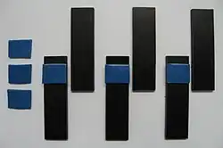 - le test de probe-tack consiste à coincer un adhésif mou entre deux pistons pour déterminer à quelle force il résiste et quelle énergie est dissipée pendant le décollage, c'est une mesure de sa pégosité (appelée tack) ;
