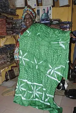 - ↑ (en) Norma H. Wolff, « Adire », sur fashion-history.lovetoknow.com (consulté le ).