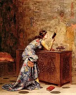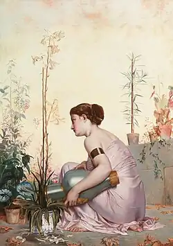 À la fin du XIXe siècle et au début du XXe siècle, la peinture réaliste était aimée et appréciée des contemporains. À cette époque, l'art, et surtout la peinture, dut apporter sa caution à un certain mode de vie, soumis au code moral de la bourgeoisie : c'est ainsi que de nombreuses œuvres artistiques servirent à témoigner de la haute valeur de la morale bourgeoise. Cet art, souvent caractérisé "d'art pompier" ou de "kitsch",est entièrement lié aux préoccupations de la bourgeoisie et de son mode de vie. Tout ce qui était étranger à ce mode de vie se retrouve dans des scènes inspirées de l'Antiquité gréco-romaine, de la mythologie, du Moyen Age ou encore de la Renaissance. La peinture historique représentait d'ailleurs l'expression artistique la plus accomplie, selon la traditionnelle hiérarchie des thèmes.