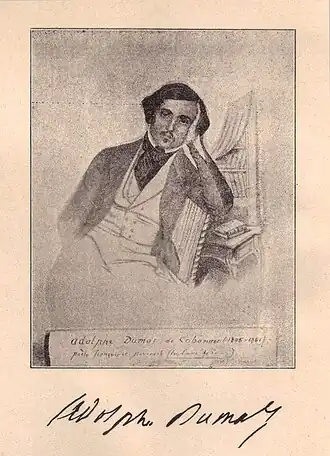 « M. Adolphe Dumas — qui n'est nullement parent d'Alexandre Dumas — rencontra celui-ci dans un couloir […].