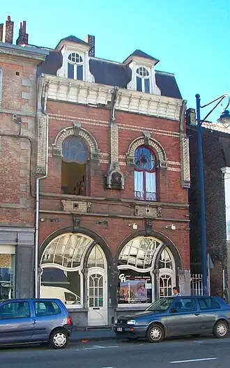 - 1 2 les sgraffites rouge et or de la rue Tillieux ne sont probablement pas de Cauchie; par ailleurs, ils sont très semblables aux sgraffites rouge et or de la double maison construite par Charles Trussart au n° 17-19 de la rue Renée Prinz