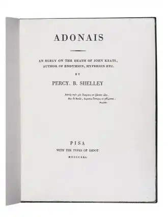 Adonais est une élégie sur la mort de John Keats, auteur d'Endymion, Hyperion, etc.