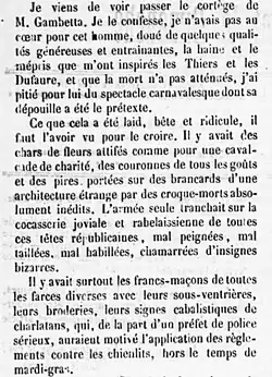 - ↑ « La Gazette de France du 28 juillet 1874 »
