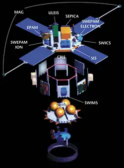 - SWEPAM (Solar Wind Electron, Proton, and Alpha Monitor) mesure les flux d'ions et de plasma d'électrons contenus dans le vent solaire. L'instrument détecte les particules ayant une énergie allant de 0,26 à 36 keV pour les ions et de 1 à 1 350 eV pour les électrons.