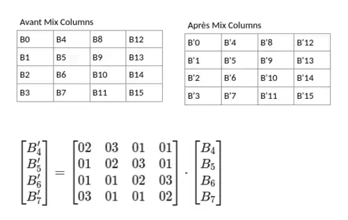 -Inverse MixColumns (sauf lors ddu dernier tour).