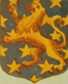 Les armes : "d'azur, semé d'étoiles d'or, au lion de même, armé et lampassé de gueules".
