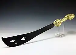 Conçus à l'origine pour la guerre ou pour des exécutions capitales les mfena (pluriel d'afena)[1] sont depuis utilisés au cours des cérémonies et comme objets de pouvoir réservés au roi et dont le manche est souvent recouvert de feuilles d'or[2]. Dans ces cas-là il ne possède même plus de tranchant et a pour seul but l'esthétique. Quand il est porté à la droite du souverain il est appelé akrafena, et bosomfena quand il est porté à gauche[3]. Décrit pour la première fois au XVIIe siècle par les Hollandais, son manche en bois à deux boules est souvent recouvert d'or ou de peau de raie et sa lame recourbée est en fer, terminée par une petite excroissance caractéristique de ces sabres. À double tranchant par le passé il perd peu à peu ce tranchant et vers 1900 il est utilisé comme objet de pouvoir par le roi[4].