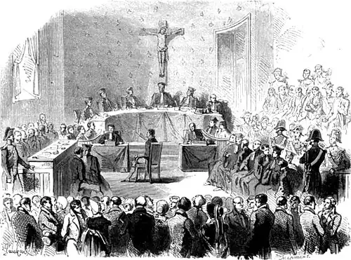 Le premier procès dure du au 13 septembre de la même année. Onze accusés sont à la barre et voient défiler 243 témoins à charge et 77 à décharge. Le verdict est à la hauteur de la cruauté du crime : quatre condamnations à mort, deux à perpétuité, un an pour Bousquier, Marianne Bancal est acquittée. Pour autant, l’affaire ne s’arrête pas là. Les esprits sont tellement surchauffés par cette parodie de procès où les élites royalistes ont fait corps pour faire condamner les accusés qu’un vice de forme imputable aux greffiers est allégué pour faire annuler le procès et le délocaliser à Albi, et c’est en cour d’assises du Tarn qu’est rejugée l’affaire.