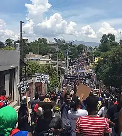 Le , des milliers de manifestants défilent à Pétion-Ville dans plusieurs rues de Port-au-Prince et celles de la commune de Delmas.