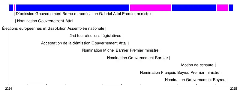 | Attal / Barnier | Emmanuel Macron | [4] | [5] | 16 jours |