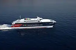 | HSC Morocco Express 1 | 9216171 | 2000 | 31 mai 2024[13] | 72 m | 680 | 34 nœuds | Tanger Ville - Tarifa | Anciennement Boraq (Intershipping). Acquis aux enchères en 2023. | ![]() | |