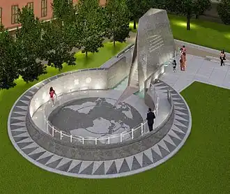 Après un concours regroupant 61 projets pour déterminer le design du mémorial, le choix fut fait en juin 2004 et consacré le lors d'une cérémonie présidée par le maire Michael Bloomberg et la poète Maya Angelou. Le mémorial en granite de huit mètres de haut fut imaginé par l'architecte américain d'origine haïtienne Rodney Leon[5]. Le monument est surnommé L'arche du retour, référence à la porte du non retour, un des principaux lieux d'embarquement en Afrique d'esclaves vers l'Amérique, situé à Ouidah (Bénin) ou sur l'île de Gorée (Sénégal)[6]. Le mémorial sert à présenter différentes expositions culturelles.