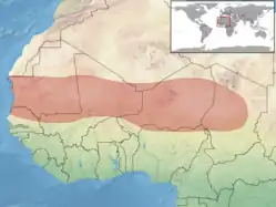 Cette espèce se rencontre en Mauritanie, au Sénégal, au Mali, au Burkina Faso et au Niger[1].