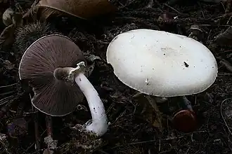 - Lames serrées, crème clair puis rosées et enfin graduellement brun chocolat. Sporée brun foncé.