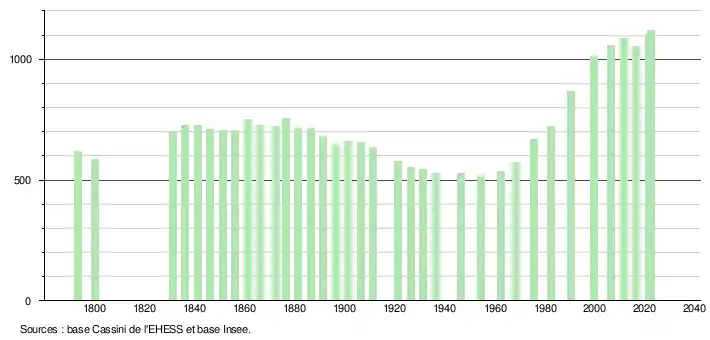 - ↑ Fiches Insee - Populations de référence de la commune pour les années 2006, 2007, 2008, 2009, 2010, 2011, 2012, 2013, 2014, 2015, 2016, 2017, 2018, 2019, 2020, 2021 et 2022.