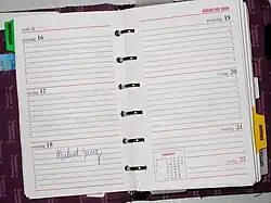 Dans sa version papier, il regroupe l'ensemble des jours de l'année, organisés avec un découpage d'une page par jour ou par semaine, deux pages par semaine, etc.