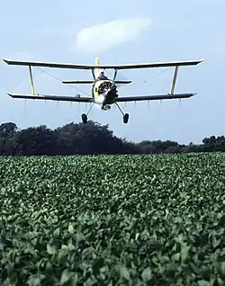 Pulvérisation d’un champ par avion, dans l’Illinois, aux États-Unis.
