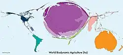 En 2020, onze pays produisent sur plus de 5 000 hectares en agriculture biodynamique[14]. La France occupe le 3e rang mondial dans ce classement.