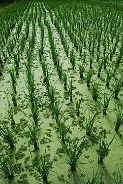 Près de vingt-quatre pour cent de la superficie du territoire de la Malaisie est constitué de terres consacrées à l'agriculture. Il s'y trouve environ 43 000 différentes machines agricoles et tracteurs. La Malaisie comporte 7,605,000 d'hectares de terres arables et permanente des terres cultivées. La Malaisie produit 535,000 tonnes de bananes par an. Seulement environ cinq pour cent des terres cultivées de Malaisie sont effectivement irriguées[7]. Ce graphique affiche une prévision de la relation entre consommation de riz, la surface plantée, et l'augmentation de la population à partir de 2008 jusqu'en 2030.