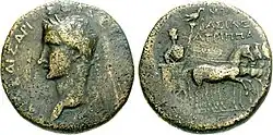 Pièce de monnaie figurant Agrippa Ier vers 42. | |