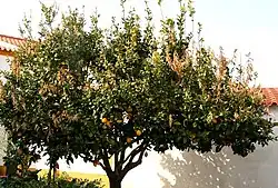 Citronnier gelé à côté d'un oranger indemneZone 9b (−4°C à −1°C) Oranges douces (C. sinensis), Grapefruit (français de France pamplemousse, C. paradisi), Pamplemoussier (C. maxima), Mandarines méditerranéennes, Tangor, Tangelo. Citron (C. limon)[44], le cédrat (C. medica) sous réserve d'être protégé du vent[45]. H . J. Webber classe le cédratier comme très peu rustique, moins rustique que la lime tropicale[17]. La résistance au froid du citronnier est plus faible que celle des orangers doux, des pamplemoussiers et des grapefruits, surtout exposé au vent (B. Tkatcheneao, 1951)[46].