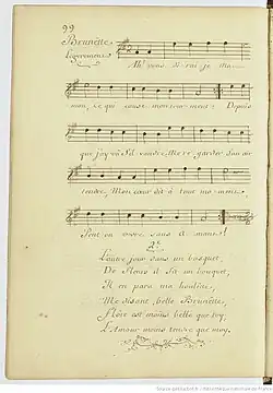 - 1 2 Mentionné dans le livret du disque « Plaisir d'amour, Chansons et romances de la France d'autrefois », Ensemble Le Poème harmonique, dir. Vincent Dumestre (juin 2004, Alpha).