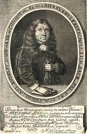 Ahasverus Fritsch est un poète, un compositeur et un avocat allemand né à Mücheln dans l'actuel Land de Saxe-Anhalt le et mort le à Rudolstadt, dans le comté de Schwarzbourg-Rudolstadt.