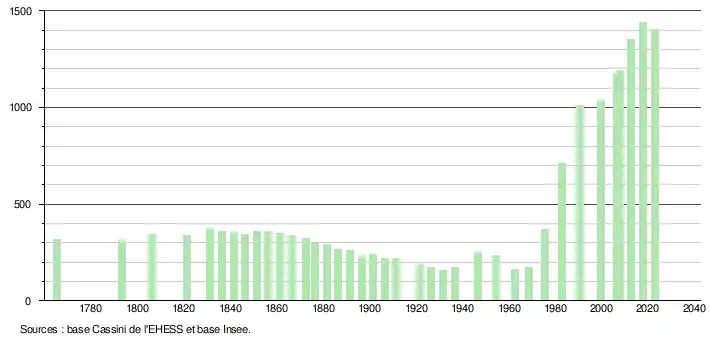 - ↑ Fiches Insee - Populations de référence de la commune pour les années 2006, 2007, 2008, 2009, 2010, 2011, 2012, 2013, 2014, 2015, 2016, 2017, 2018, 2019, 2020, 2021 et 2022.