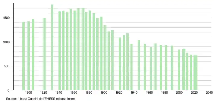 - ↑ Fiches Insee - Populations de référence de la commune pour les années 2006, 2007, 2008, 2009, 2010, 2011, 2012, 2013, 2014, 2015, 2016, 2017, 2018, 2019, 2020, 2021 et 2022.