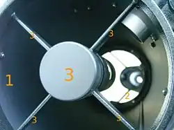3-Miroir secondaire et tiges support, cause des aigrettes de diffraction.