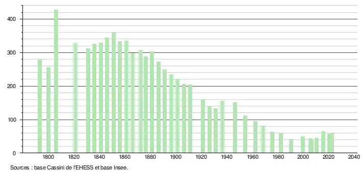 - ↑ Fiches Insee - Populations de référence de la commune pour les années 2006, 2007, 2008, 2009, 2010, 2011, 2012, 2013, 2014, 2015, 2016, 2017, 2018, 2019, 2020, 2021 et 2022.