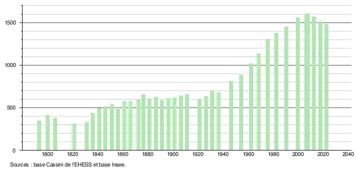 - ↑ Fiches Insee - Populations de référence de la commune pour les années 2006, 2007, 2008, 2009, 2010, 2011, 2012, 2013, 2014, 2015, 2016, 2017, 2018, 2019, 2020, 2021 et 2022.