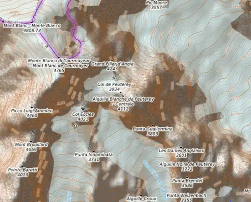 L'aiguille Blanche de Peuterey est un sommet de la partie italienne du massif du Mont-Blanc. Elle culmine à 4 108 m d'altitude.
