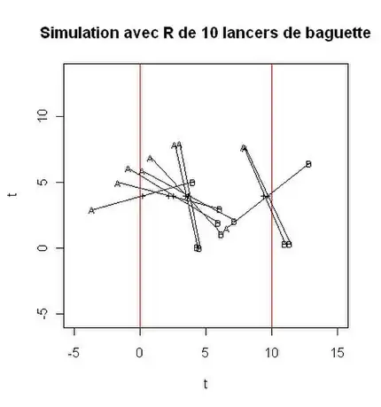 - les lancers successifs doivent être nombreux, indépendants, et on doit considérer une situation d'équiprobabilité (la position de l'aiguille est indifférente, en position et en angle, par rapport au parquet) ;