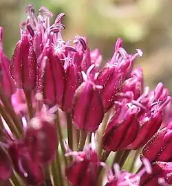 C'est une plante grêle. Les fleurs en cloches sont rassemblées en une ombelle dense, sphérique sous laquelle persiste généralement le spathe en deux parties. Les étamines des fleurs sont très protubérantes.