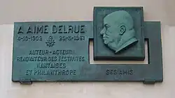 Aimé Delrue figure sur le Mur tombé du ciel, qui représente les personnages marquants de l'histoire de Nantes.