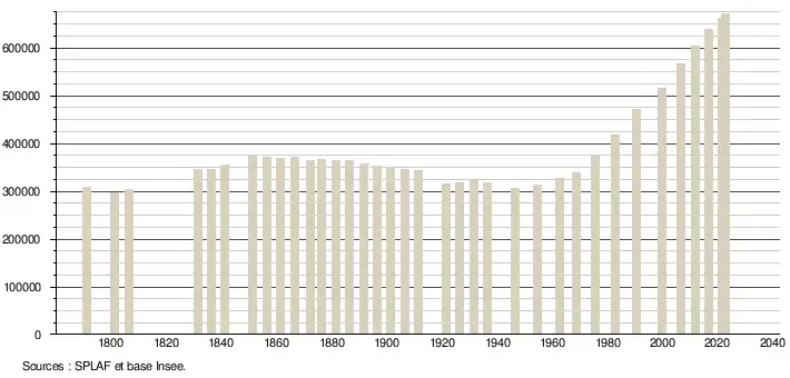 - ↑ Population municipale de référence en vigueur au 1er janvier 2025, millésimée 2022, définie dans les limites territoriales en vigueur au 1er janvier 2024, date de référence statistique : 1er janvier 2022.
