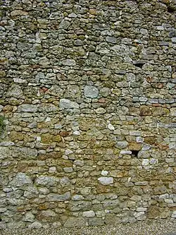 - Son rez-de-chaussée était occupé par un cellier et une écurie², les pièces d'habitation se situant en étage. Le bâtiment a été endommagé pendant la Seconde Guerre mondiale, et une partie de son second étage a été détruit. Il était initialement doté d'un escalier sur sa façade sud, menant au premier étage, et d'un second, toujours présent sur sa façade nord, menant au deuxième étage à une salle décorée de fresques représentant des chevaliers, dont il reste des vestiges[37]. La ferme appartient toujours à des exploitants agricoles. Il ne se visite pas.