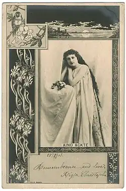 Aino Ackté, de son vrai nom Achté (née le à Helsinki, morte le à Vihti)[1] fut la première chanteuse soprano d'opéra finlandaise de stature internationale et la pionnière de l'opéra finlandais.