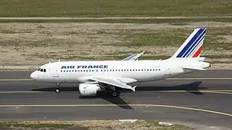 L'Airbus A319 est un avion de ligne biréacteur à fuselage étroit, appartenant à la famille A320, commercialisée par Airbus Commercial Aircraft[2],[3]. Destiné aux vols courts et moyens-courriers, il peut embarquer jusqu'à 156 passagers au maximum et sa distance franchissable atteint les 6 950 km. Son assemblage final est réalisé à Hambourg, en Allemagne. Il effectue son premier vol le et entre en service avec Swissair le .
