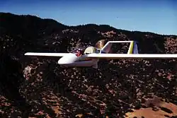 Le ADI Condor en vol. Un seul prototype fut construit en 1981 qui fut détruit en 1982.