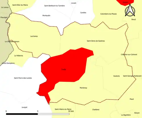 | Saint-Denis-de-Gastines | 53211 | Mayenne | commune de la couronne | 48,01 | 1 440 (2022) | 30 | |